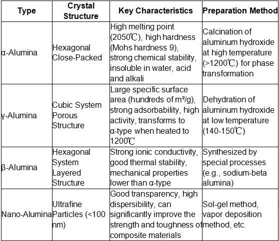 Ang pangunahing pag -uuri ng alumina powder ay batay sa istruktura ng kristal at proseso ng paghahanda. Ang mga karaniwang uri at ang kanilang mga katangian ay ang mga sumusunod: